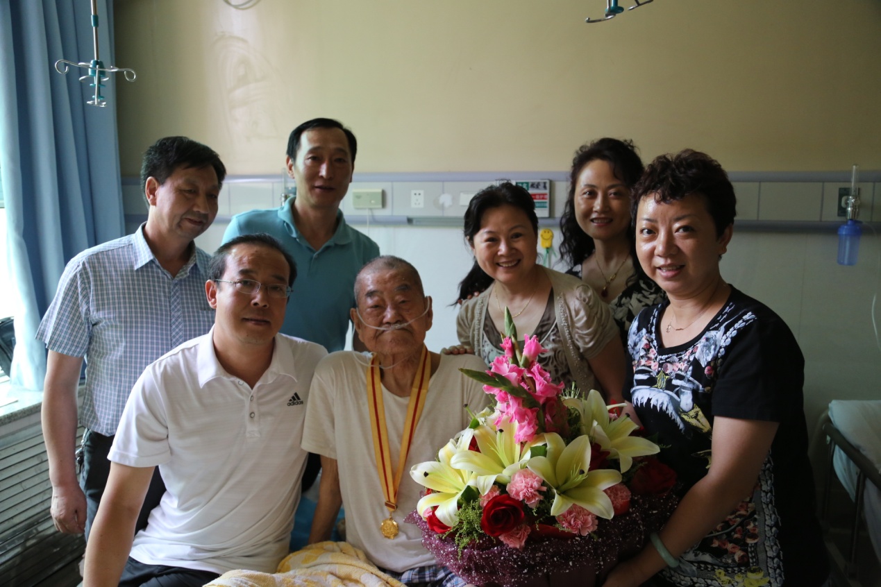 罗斌代表院党委、院行政向成老表达了亲切的问候,颁发了中共中央、国务院、中央军委授予的奖章及国家慰问金8000元。并与成老进行了亲切交谈,对成老的生活起居、身体状况等做了详细了解。成老回忆并讲述了革命战争时期的峥嵘岁月。最后,看望人员与成老一起合影,并祝愿老人家早日康复。