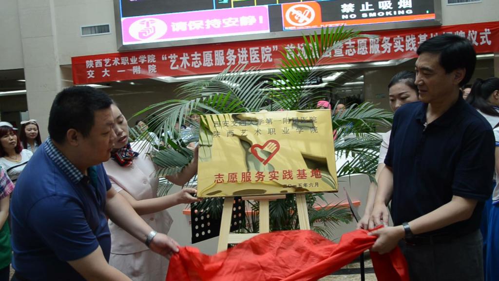 2015年6月30日,我院与交大第一附属医院合作举办“艺术志愿服务进医院活动”首场演出暨“志愿服务实践基地”揭牌仪式。我院院长助理、学生处处长邵鸣出席了仪式,我院团委工作人员、器乐系王育等部分师生参加了活动。