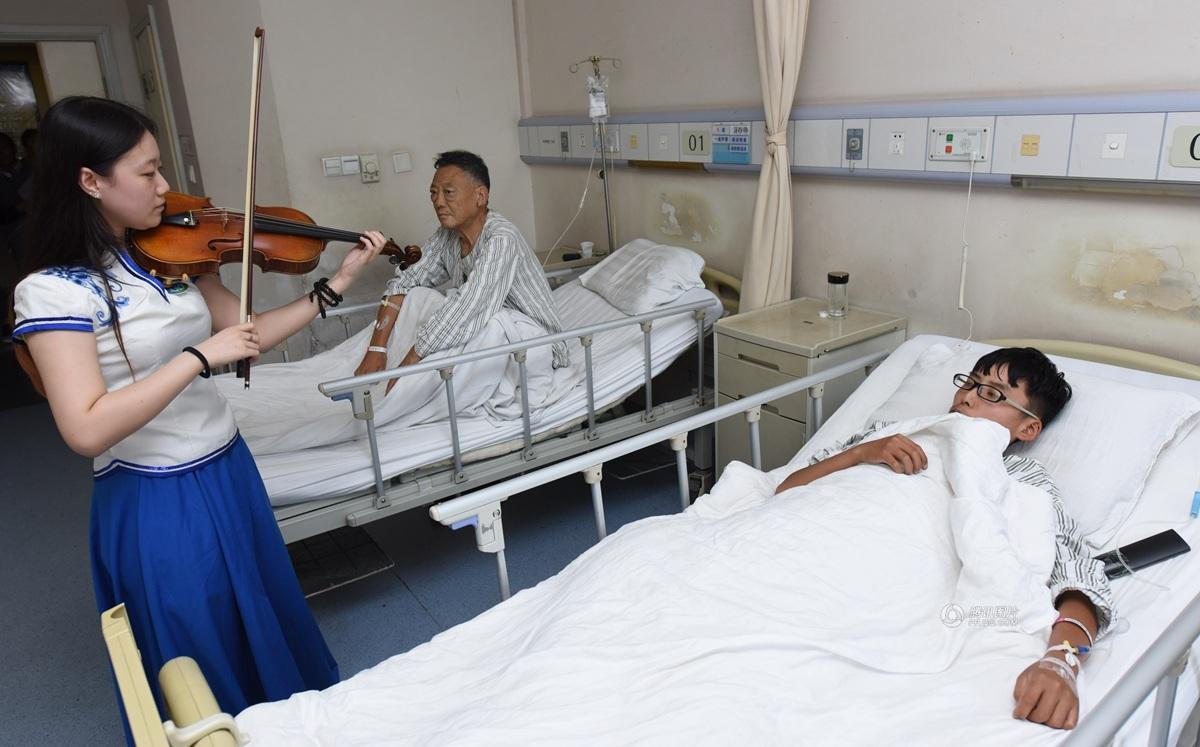 在门诊大厅演出的同时,由我院志愿者组成的文艺小分队深入科室病区,将欢乐与艺术关怀带到更多的患者身边。
