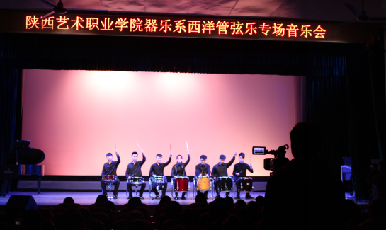 音乐会以双排键独奏《荒野七侠》震撼开场,瞬间点燃了现场的气氛;紧接着一首独具韵味的钢琴曲《皮黄》在演奏者婉转、流畅如歌的旋律中映入耳帘,作品中的旋律、和声、节奏无不蕴含着浓厚的戏曲风格;由王育和金远老师与学生共同演绎的萨克斯四重奏《培尔金特》仿佛在给观众诉说着一段故事;马林巴独奏《降A大调练习曲》、钢琴独奏《幻想舞曲》、《b小调谐谑曲》、吉它独奏 《The loner》等极具特色的曲目,完美展示了器乐系教学成果。音乐会在节奏明快,积极向上,特别强调团队意识和拼搏精神的重奏《行进打击乐》中落下帷幕。