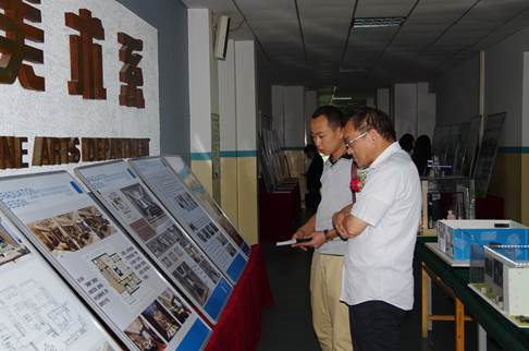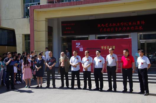 5月24日上午,美术系在雁南校区教学楼门前举行了主题为“兿彩▪熠彩”的2013级学生毕业设计作品展开幕式。学院党委书记王延奇,副院长肖幸海、罗斌、佘占宏、任玉银,院长助理邵鸣,原西安美术学院教务处长赵拓教授,西安美术学院工艺系柯建军教授,陕西师范大学美术学院环境艺术设计系主任刘湉教授,独立策展人、画家、诗人周莉女士,成才、南北新空间培训机构,301白石培训学校,龙发装饰、九朝装饰、北京金兰朵装饰、南洋迪克、海派装饰、陕西工易施网络科技有限公司等企业代表以及美术系师生出席了本次开幕式。