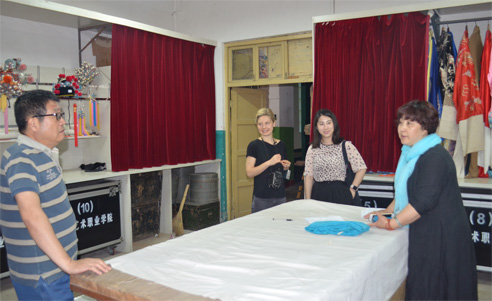 尉霞为其概述了秦腔艺术的特点和流派,分别讲解了生、旦、净、丑个行当的服装、头帽,尹梨(Liz Hingley)女士对旦角的凤冠与净角的蟒服尤为喜爱,并一一拍照记录。