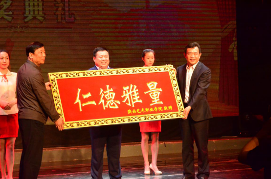 延安天丰工贸有限责任公司董事长宗维成作为奖学金设立人在颁奖仪式上发言并为获天丰艺术教育奖学金特等奖的学生颁奖。中共陕西省委高等教育工作委员会委员、宣传部部长王军周,陕西艺术职业学院党委书记王延奇为获得天丰艺术教育奖学金一等奖的王迎、童茜等学生颁奖。省委高等教育工作委员会委员,中共陕西省委高等教育工作委员会副书记、陕西省高等教育纪律检查委员会书记郝利生;陕西省教育厅副厅长、厅党组成员,省高等教育局副局长王紫贵为宗维成先生颁发了学院精心制作的“仁德雅量”的匾额。