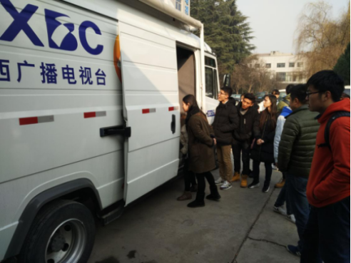 同学们首先来到电视塔,工作人员就电视信号、电视频率等问题进行了详细的介绍,同学们聚精会神听取讲解。在陕西广播电视卫星地球站,认真听取工作人员就转播车用途、结构的详细介绍。在录制《第一新闻》 《新闻联播》演播室工作人员对当前电视节目制作的主流设备向同学们进行了讲解。 在参观演播室、控制中心、配音室的过程中,工作总监详细讲解了节目的制作流程、环节及格工作岗位的具体要求,同时就同学们提出的各种问题作出解答。随后电视台的工作人员向学生讲解了广电大剧院的功能用途、结构,并对灯光音响设备等进行了详细的介绍。
