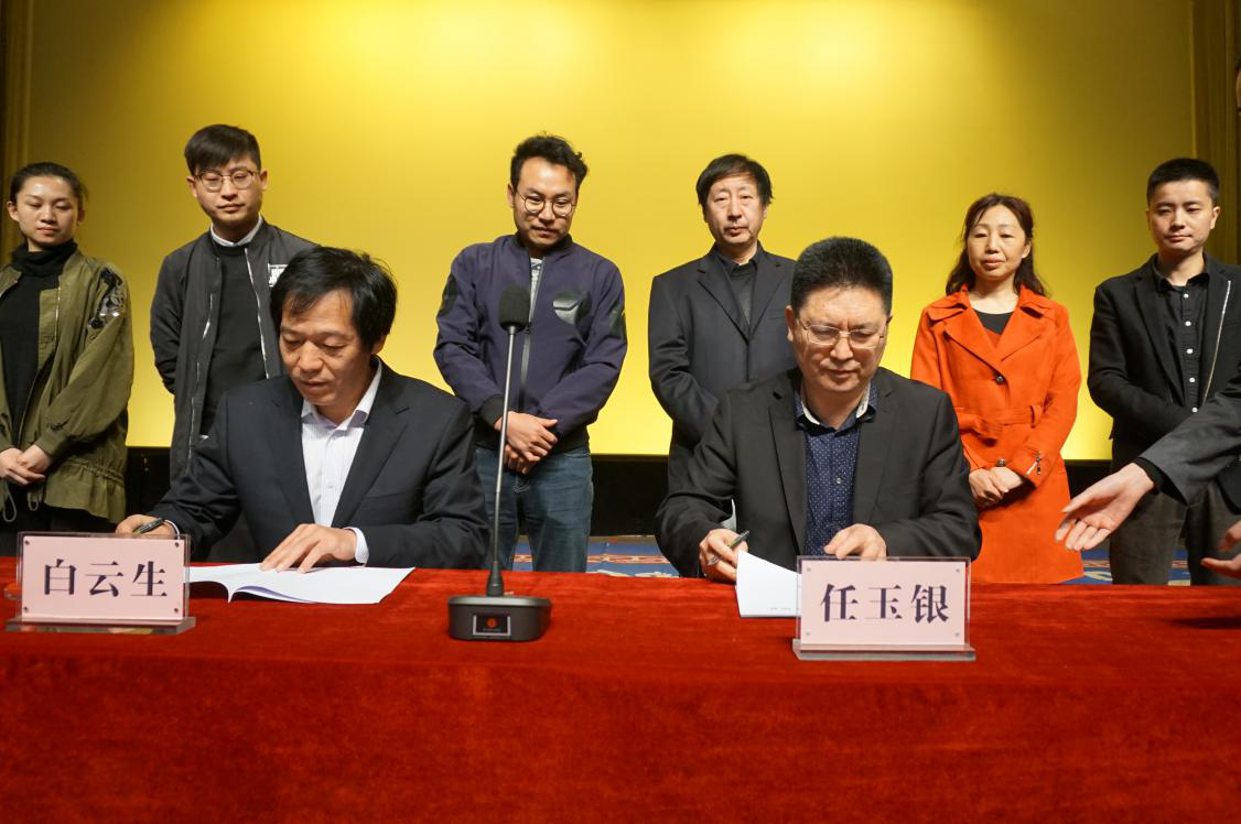 仪式由影视系副主任王亮主持。陕西人民艺术剧院书记白云生、院长助理李俊强,话剧《白鹿原》执行导演聂力及我院任玉银副院长和教务处、影视系等相关部门领导出席了本次签约仪式。任院长表示:“希望通过校企合作的方式提高学生的实践能力,专业技术能力,为学生搭建创业就业平台,拓宽就业渠道,为我院的教育教学注入强劲动力”。随后,任玉银副院长与白云生书记正式的签订了戏剧影视表演专业校企合作协议书,并与参会人员合影留念。