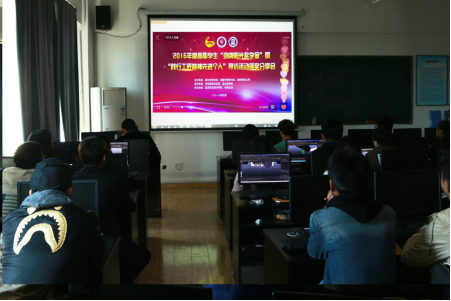 影视系学生观看2016年高职学生“践行工匠精神先进个人”颁奖分享会现场