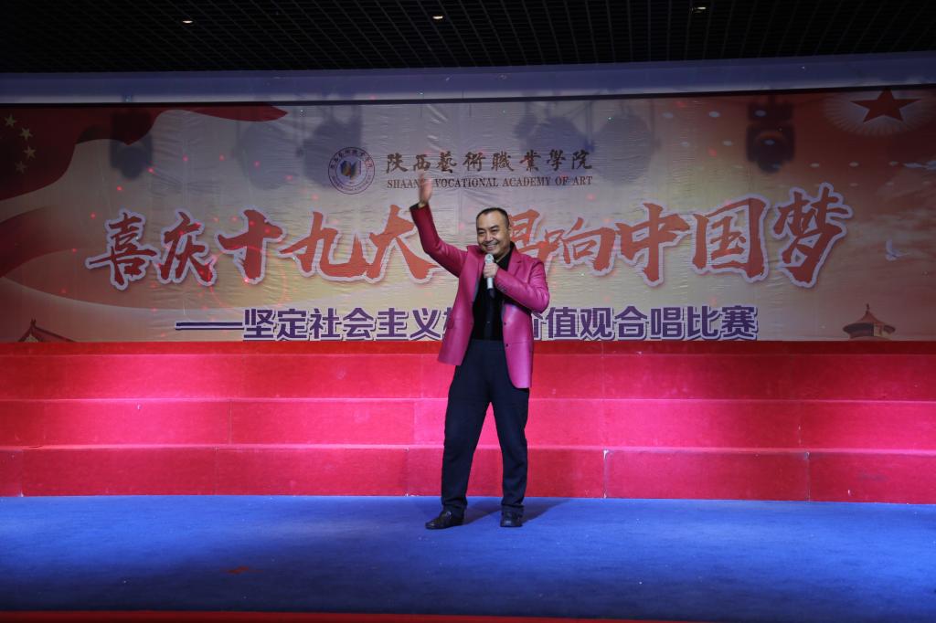 10月25日,陕西艺术职业学院狄寨原校区学术报告厅歌声飞扬,经过一个多月的学唱、排练,由学院党委宣传部、学工部共同主办的学唱新创歌曲《社会主义核心价值观之歌》合唱比赛激情开唱,喜庆党的十九大胜利召开,凝聚新时代新征程学院发展力量。来自全院各系中、高职组共12支参赛队参加了此次比赛。学院党委书记王延奇,党委副书记、院长强陆平,党委副书记、纪委书记杨福旺,党委委员、副院长佘占宏、任玉银,党委委员、院长助理兼学工部(学生处)部长(处长)邵鸣以及全院各系部、各部门师生代表观看了此次比赛。陕西传媒网、腾讯大秦网、西部网等多家社会媒体对合唱比赛进行了现场报道。