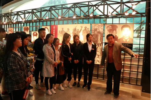 影视系党员师生跟随讲解员参观纪念馆