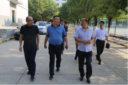学院党委委员、副院长任玉银(左一)与相关部门负责人在老校区检查开学准备工作