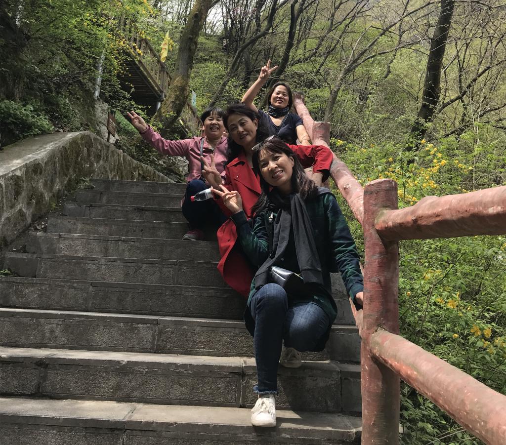 当天上午,老师们全部就位后,大家共同向目的地攀登。四月的太平国家森林公园紫荆花遍布山野、鸟语啁啾、溪流潺潺……途中,老师们热情满怀,结伴而行,在坦途时自由欣赏美景,相互用相机记录这难忘的时刻;在险处时,相互伸出援手,共同攀向顶峰。经过三个多小时的努力,老师们到达了目的地,极目远望,荡涤心灵,充分体会“山高我为峰”的成功喜悦。