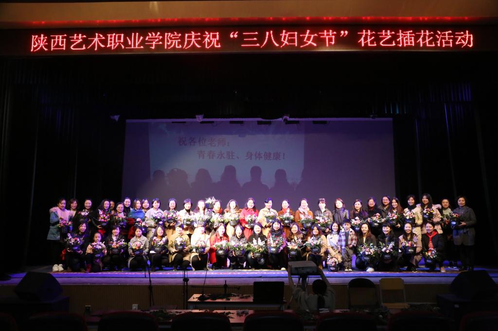 3月8日,走进陕西艺术职业学院小剧场春意盎然、花香袭人,全院女教职工欢聚一堂开展艺术插花活动,喜庆“三八”国际妇女节。党委书记王延奇,党委副书记、院长强陆平为学院广大女教职工送上节日的祝福,党委副书记、副院长肖幸海为活动致辞,祝愿女教职工们爱生活,爱工作,永远美丽幸福。