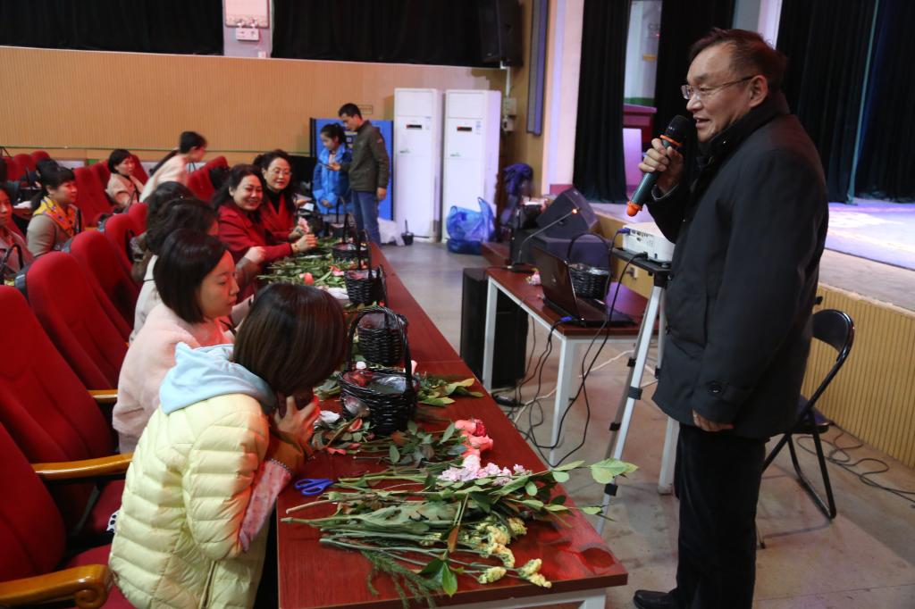 | 学院党委书记王延奇点评教师们的插花作品并为广大女教职工送上节日祝福 |
