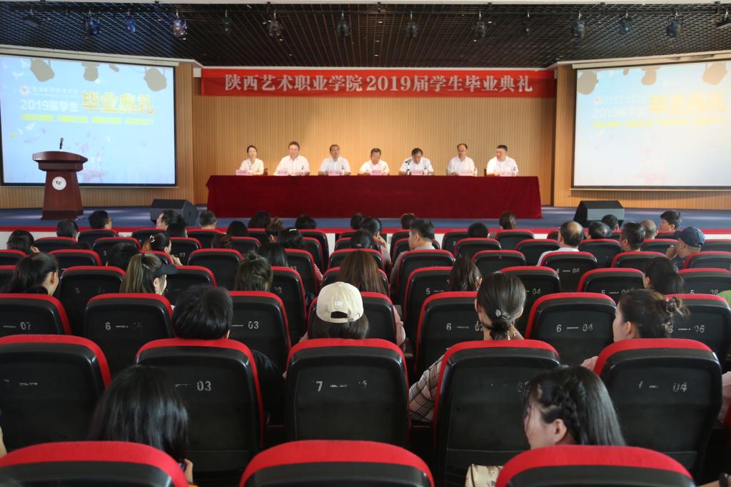 7月14日上午,陕西艺术职业学院2019届学生毕业典礼在狄寨校区一号教学楼五楼报告厅隆重举行。院党委副书记、院长强陆平,党委副书记、副院长肖幸海,党委委员、副院长罗斌、佘占宏、任玉银,党委委员、院长助理兼学工部部长邵鸣,党委委员、干部人事处处长刘艳萍出席了毕业典礼。学院各系、各部门负责人,全体辅导员、班主任及2019届毕业生参加了毕业典礼。典礼由肖幸海主持。