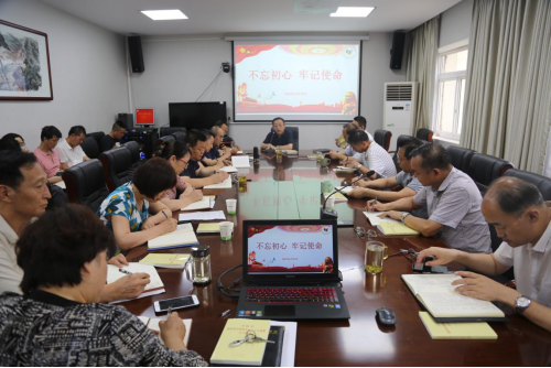 王延奇指出,开展“不忘初心、牢记使命”主题教育要用习近平新时代中国特色社会主义思想和党的十九大精神武装头脑、指导实践、推动工作。每位党员要自觉做共产主义远大理想和中国特色社会主义共同理想的坚定信仰者与忠实实践者;坚持党的领导,在党爱党、在党为党,坚定对党的忠诚;保持共产党人的赤子之心,坚持以人民为中心的发展理念,站稳人民立场,摆正位置,牢记宗旨;坚持实现中华民族伟大复兴的信心不动摇,立足岗位、勇于创新担当,砥砺奋斗。