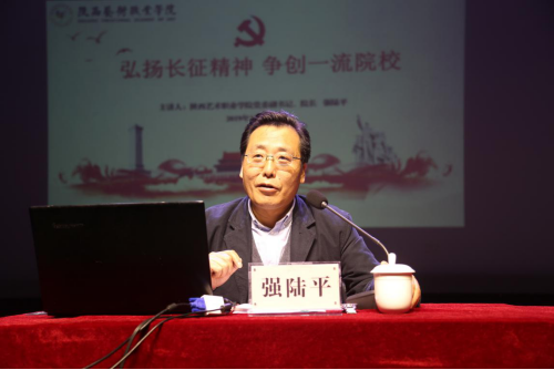 11月8日,党委副书记、院长强陆平于文艺南路老校区小剧场讲题目为《弘扬长征精神 争创一流院校》的“不忘初心、牢记使命”主题教育专题党课。党委书记王延奇及其他院领导班子成员、副处以上干部以及全院党员200余人听取了党课。
