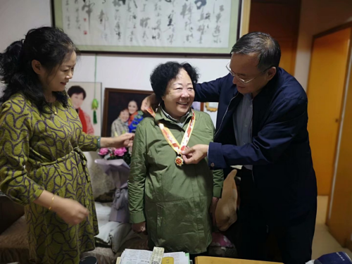 国庆前夕,院党委副书记、副院长肖幸海与工会工作人员专程将纪念章送到老同志们的手中,并向老同志们送上最诚挚的慰问和祝福。