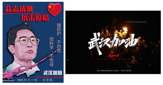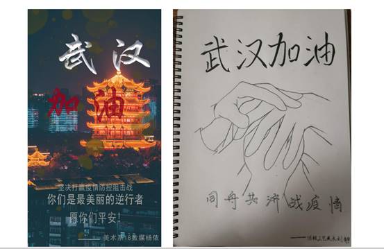接到倡议后,美术系直属党支部积极动员,全系党员师生迅速行动,发挥专业特长,用海报、书法、绘画、篆刻、雕塑等多种艺术形式,表达对一线战“疫”英雄和白衣天使们的感激与深情祝福,以及对早日战胜疫情的期待,鼓舞人们众志成城,共克时艰,为武汉加油,为中国加油!早日打赢疫情防控阻击战!