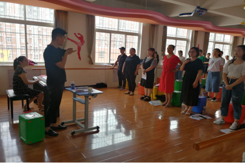 本次培训采取专业教师与学员互动、理论学习与实践操作相结合的方式进行,由贺波担任主讲,张雪纯担任艺术指导。培训中,贺波围绕合唱团的组建、合唱的音准训练、合唱指挥技巧以及排练程序等方面内容对合唱艺术进行深入浅出的讲解,并通过生动的案例与现场示范分享了自己对相关教学理念的独特思考。培训现场对《山丹丹花开红艳艳》《四季的问候》《沂蒙山歌》三首作品进行了排练,让学员在实践中提升合唱指挥技能。