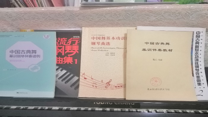 之外,我还注重音乐素材的选择,提升课堂趣味感。钢琴伴奏音乐是舞蹈基训教学中的一个重要组成部分,潜移默化地影响着舞蹈学生。在提高他们的音乐修养和艺术气质、加深他们对音乐的感悟能力的同时,选取合适的教材就显得尤为重要。我选用的基础教材有杨洪涛主编的《中国舞基本功训练钢琴曲集》、郑国安编著的《北京舞蹈学院钢琴伴奏教材》、付艳林编著的《中国古典舞基础训练》等。在依据北京舞蹈学院教材的基础上,还广泛搜集各个院校的经典之作。如:东北师范大学音乐学院舞蹈教材《中国古典舞基本功训练钢琴伴奏曲集》、上海戏剧学院张康明编著的《中国舞钢琴小品》、吉林艺术学院李窦逗编著的《中国古典舞钢琴伴奏曲选》等。