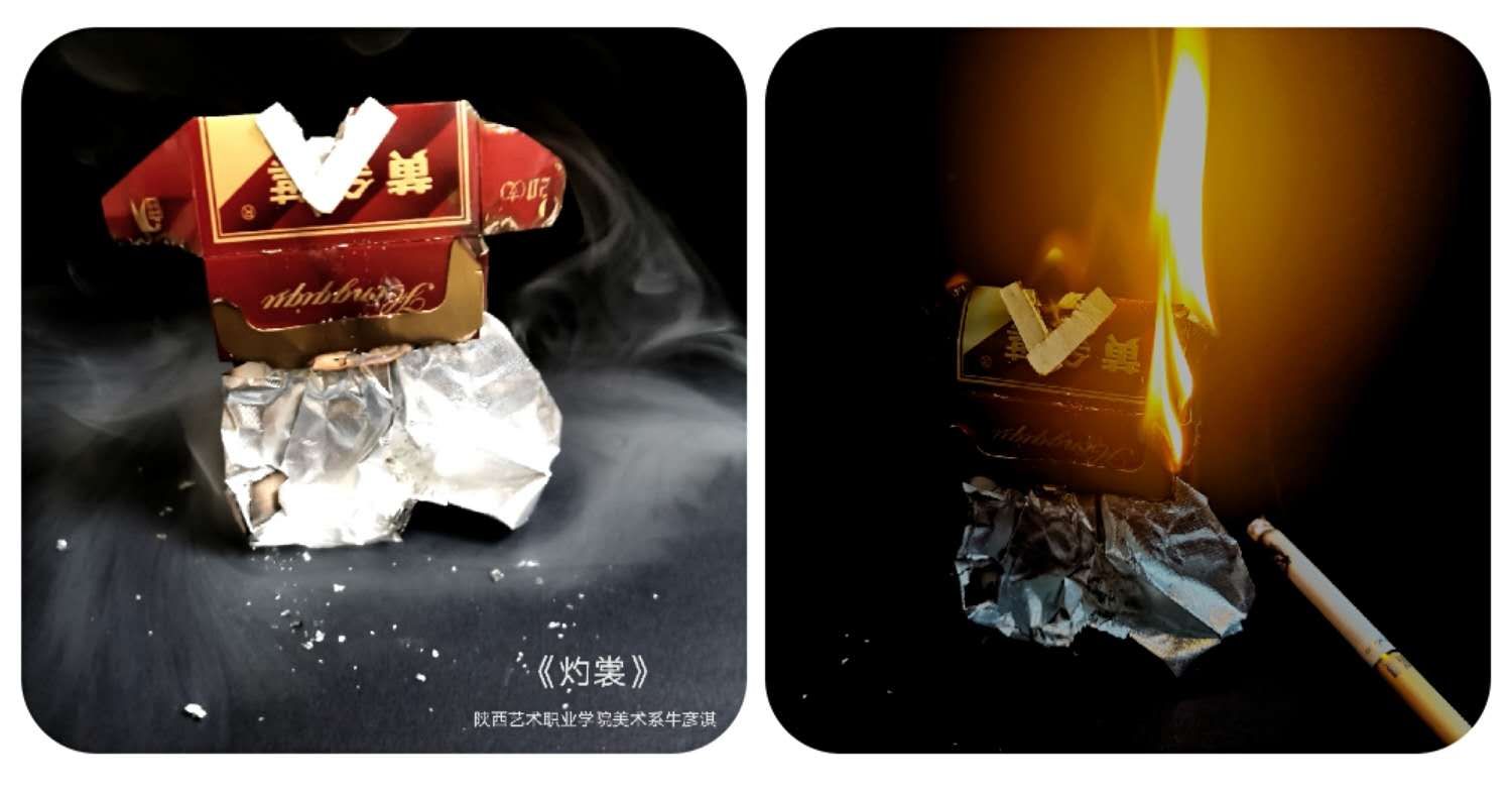 烟盒战斗飞机向无烟日进发、燃烧的烟盒彩衣向香烟告别、上锁的烟盒还你健康呼吸……在第33个世界无烟日、第71个国际儿童节来临之际,陕西艺术职业学院美术系学生围绕今年世界无烟日“保护青少年远离传统烟草产品和电子烟”主题,以“烟盒”为主要创作材料,发挥专业特长,将禁烟理念寓于奇思妙想的手工艺品、海报和造型设计中,向广大师生宣传无烟、禁烟的健康理念,主动远离传统烟草产品和电子烟,培养健康生活方式,并呼吁所有成年人行动起来,支持控烟,参与控烟,从守护孩子的健康做起,送给孩子们一份最珍贵的节日礼物——无烟健康的世界!
