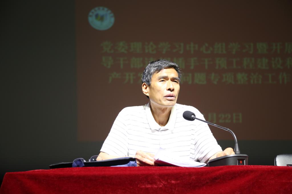 院党委书记刘正利领学《党委(党组)落实全面从严治党主体责任规定》及学院开展领导干部违规插手干预