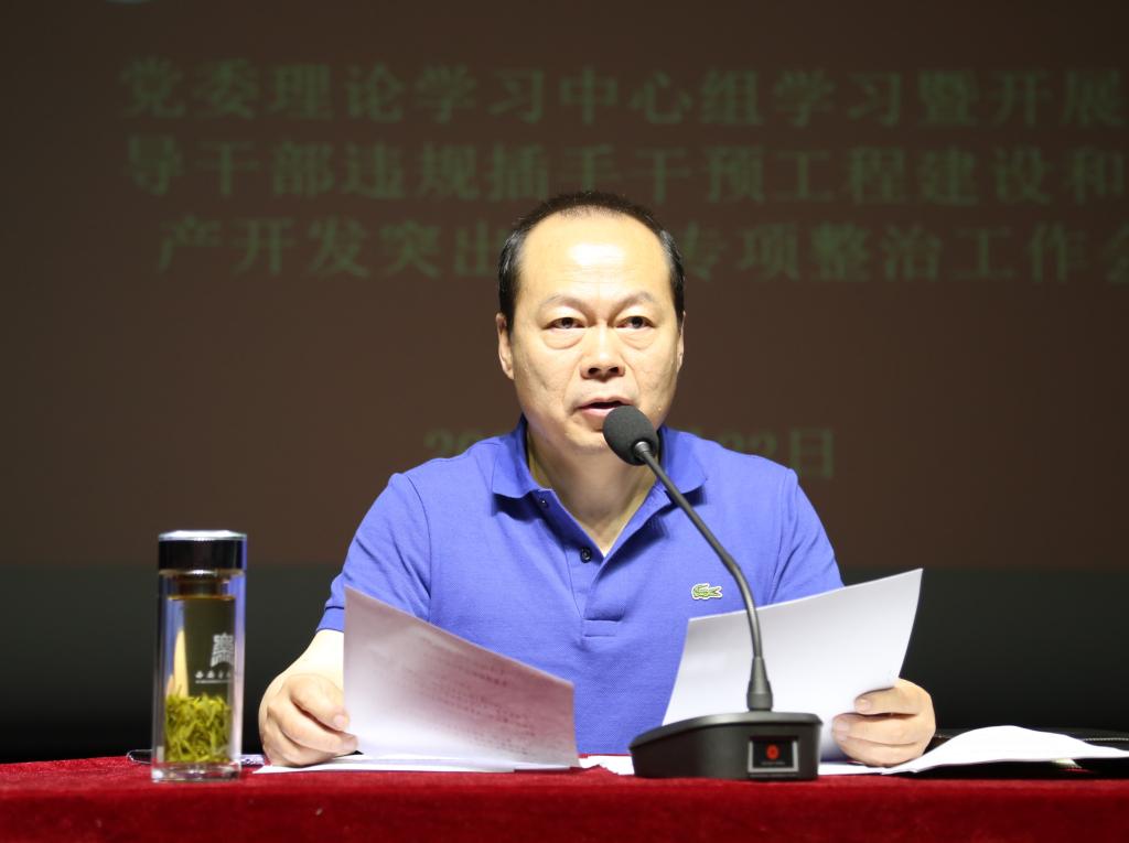 5月22日上午,院党委书记刘正利在文艺南路老校区小剧场主持召开党委理论学习中心组(扩大)学习暨开展领导干部违规插手干预工程建设和矿产开发突出问题专项整治工作会,传达学习《中国共产党员廉洁自律准则》《党委(党组)落实全面从严治党主体责任规定》《中共陕西艺术职业学院委员会关于开展领导干部违规插手干预工程建设和矿产开发突出问题专项整治工作方案》等相关文件精神和习近平总书记关于坚持和完善人民代表大会制度的重要思想。学院全体党委委员、纪委委员及副处级以上干部等参会。