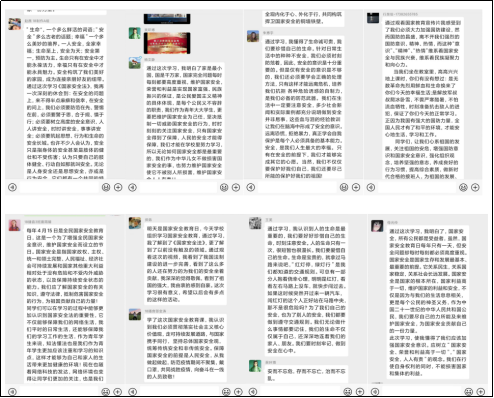 4月15日是第五个全民国家安全教育日。我院各系部结合疫情防控形势通过主题“云”班会、线上讨论、绘制海报、“云”课堂宣讲、在线观看国家安全教育课等多种方式,宣传学习国家安全知识,让学生“同上一堂国家安全教育课”,引导学生将总体国家安全观贯穿抗疫全过程,提升维护国家安全的自觉性和主动性。