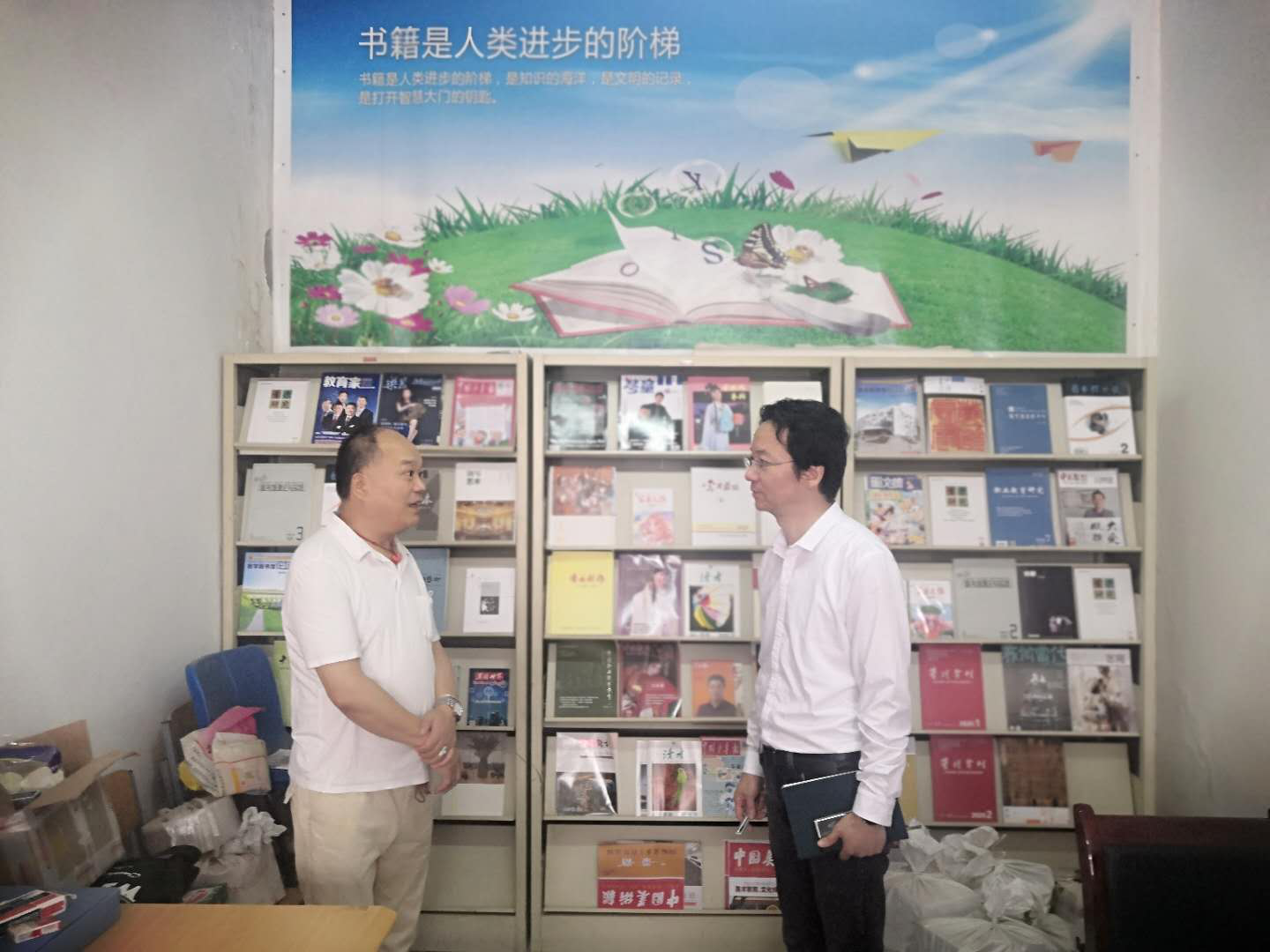 王林奎首先从图书馆的馆藏情况、资源建设、阅读推广及馆内存在主要问题和今后发展思路向杨孝龙进行了详细汇报。