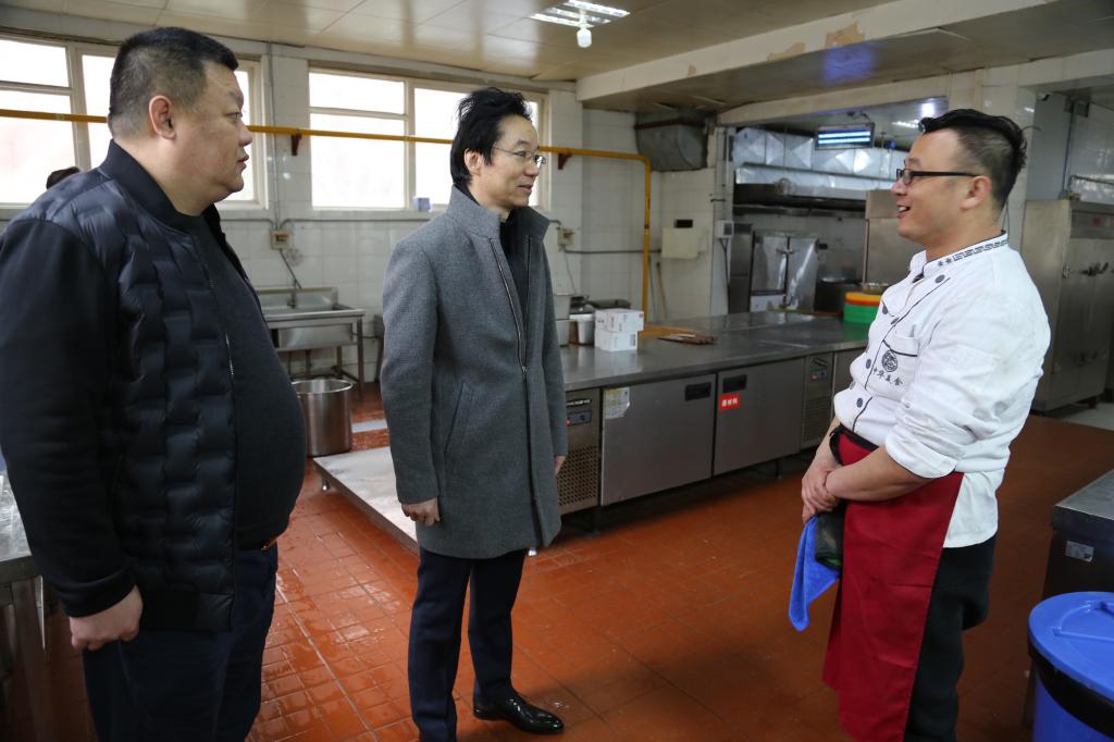 杨孝龙一行先后深入学生食堂、学生公寓、教室、实训中心、防疫物资储备室等实地检查了防疫措施与物资储备、卫生环境、水电暖供应、教学设备与生活设施运行、实训准备等情况,依次到各系部、各部门详细询问教学安排、人员到岗、后勤保障等各项准备工作,并对校园存在的安全隐患进行排查。