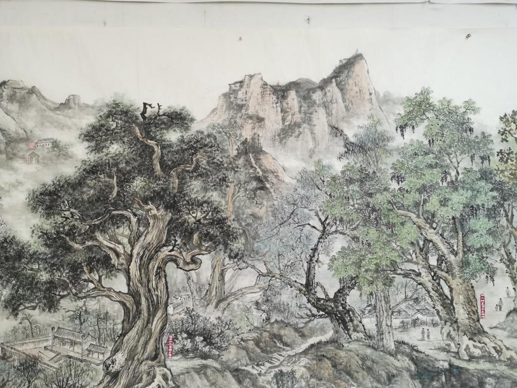 目前,经过一年多的努力,《根深叶茂》经过十余次专家座谈、论证,已完成了素材收集、线描稿、小墨稿、碳稿、百棵古树及背景的落墨着色、最后汇审等工作,将在进一步完善基础上,积极筹备“七一”前后展出事宜。