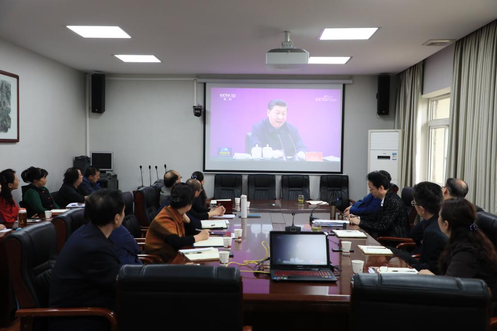 会议通过学习强国平台集体收看了新闻联播关于习近平总书记在清华大学考察的报道。