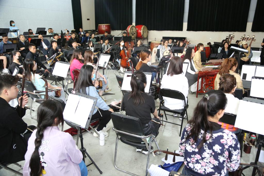 5月7日,院长杨孝龙到文艺南路校区排练厅视察我院献礼建党百年大型红色经典地方戏曲音乐会排练情况,并看望排练师生。