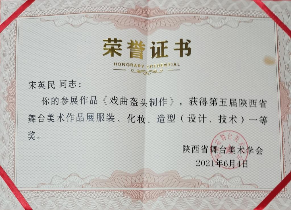戏曲系舞台艺术设计与制作专业教师宋英民作品《戏曲头帽》荣获展览一等奖