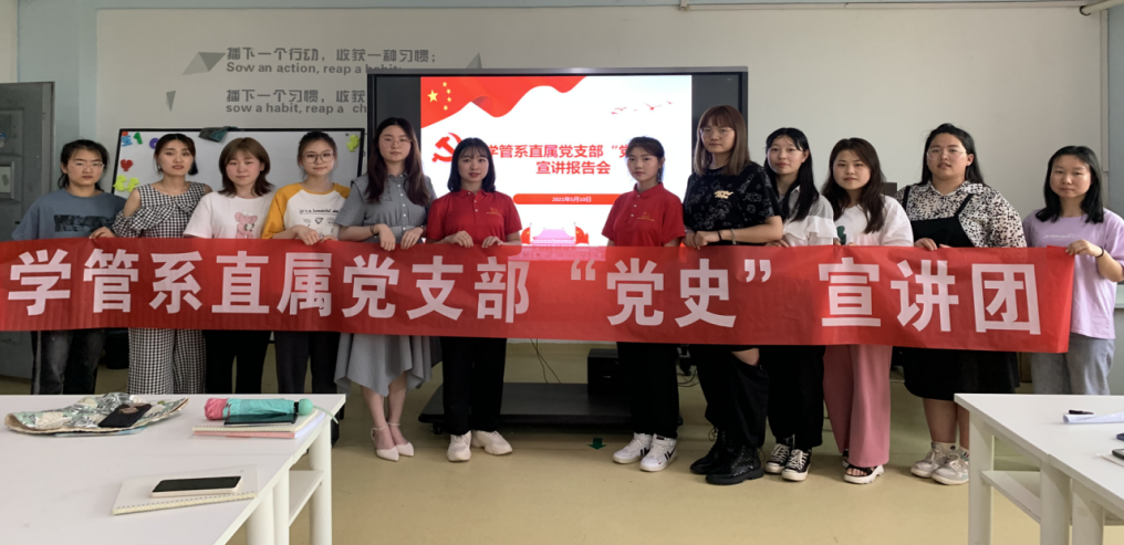 为庆祝党的百年华诞,学管系开展系列活动,让学生在党的百年奋斗伟大征程中感悟初心使命,坚定许党报国信念,青春心向党,奋进新征程。