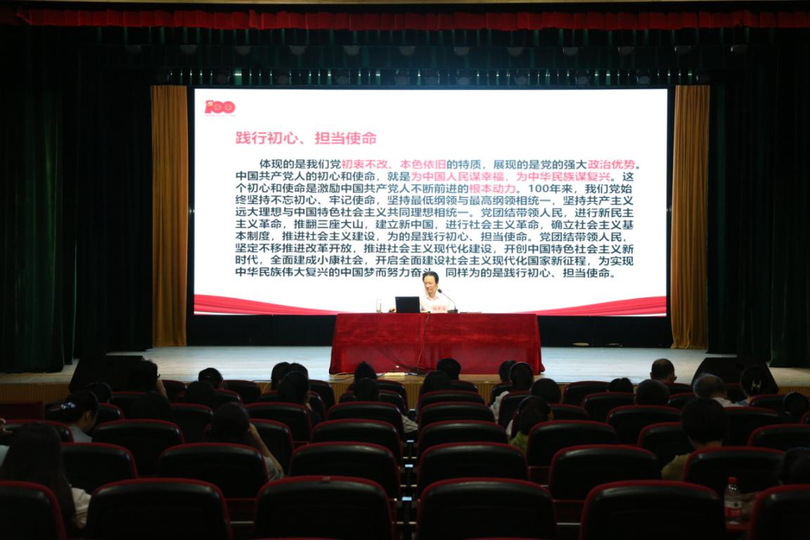 7月16日,党委副书记、院长杨孝龙在文艺南路校区小剧场讲题目为《致知力行 开创未来》的党史学习教育专题党课,基础部直属党支部、学管系直属党支部、机关党总支第一党支部党员参加党课学习。