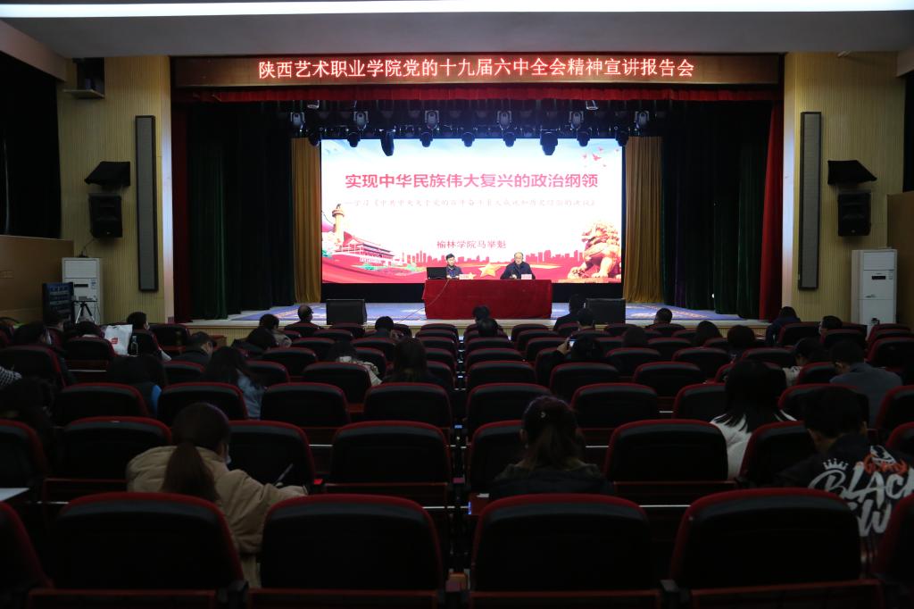 12月14日,陕西艺术职业学院举办党的十九届六中全会精神宣讲报告会,邀请省委教育工委、省教育厅党的十九届六中全会精神宣讲团成员、榆林学院红色文化研究与传承中心主任马举魁教授作专题报告。