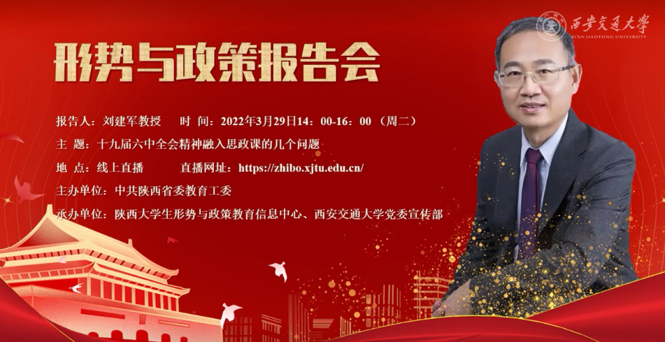 3月29日,由省委教育工委主办的形势与政策高端报告会举办。报告会邀请中国人民大学马克思主义学院二级教授、博士生导师刘建军作《十九届六中全会精神融入思政课的几个问题》主题报告。校党委理论学习中心组(扩大)成员、思政课教师、辅导员和学生代表等在线收看了报告会。