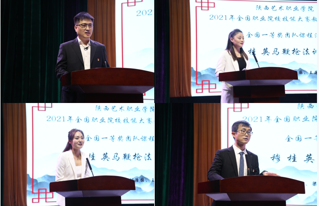 会上,校领导及与会教师观摩了戏曲学院2021年全国职业院校技能大赛教学能力比赛全国一等奖团队课程汇报。四位参赛教师张冬、梁少琴、王萍、刘治国分别对参赛作品各个环节进行了精彩展示和讲解,并分享了参赛经验与心得。
