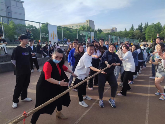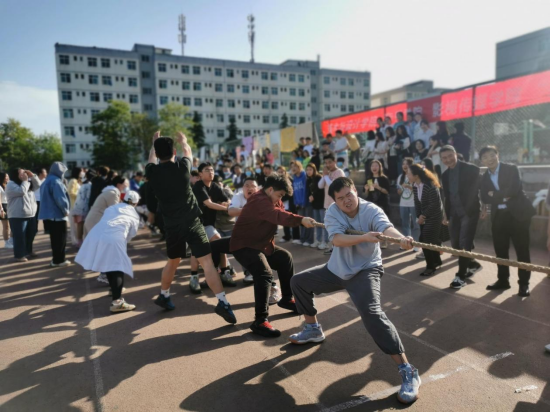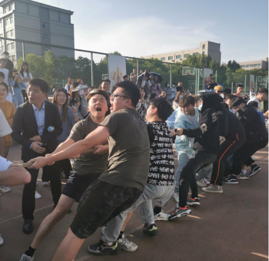 当比赛的哨声响起,队员们口中一起高呼着“一二、一二……”,双手紧握长绳,卯足了劲拼命往后拉,老师们和拉拉队的同学们助阵加油,号子声、呐喊声,此起彼伏。裁判们本着公平公正的原则,参赛人员本着"友谊第一,比赛第二"的原则,整场比赛紧张有序进行。最终经过激烈角逐,分别决出了各组的第一、二、三名,各院书记分别为获奖代表队颁发了奖状,并与参赛学生合影留念。