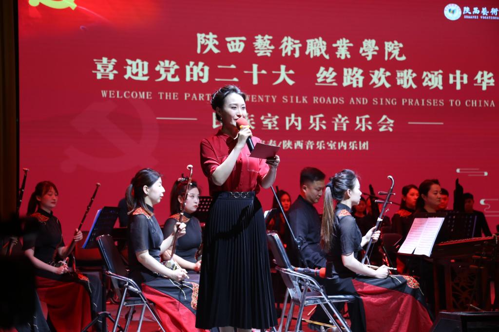 此次音乐会由陕西艺术职业学院教授、著名作曲家、指挥家、胡琴演奏家张新怀执棒指挥,陕西音乐室内乐乐团担纲演出,紧扣“喜迎党的二十大 丝路欢歌颂中华”主题,演奏