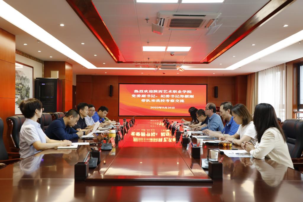全体人员集体观看了陕西艺术职业学院宣传片。郑毅刚介绍了我校办学历史、新校区建设、校内巡查、资产、审计工作等情况。他表示,陕西交通职业技术学院是国家优质高职院校建设单位、陕西省“一流院校”建设单位,先进办学理念与经验值得学习,希望双方资源共享,优势互补,携手共进,为职业教育高质量发展作贡献。