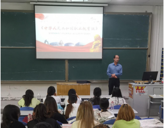 6月1日,校党委副书记、纪委书记郑毅刚在狄寨原校区深入思政课堂为广大学生解读2022年新修订《职业教育法》。