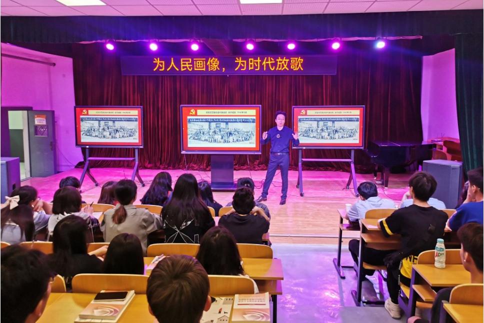 课堂上,杨孝龙以延安文艺座谈会召开的时代背景切入,为广大学生深入浅出地介绍了毛泽东同志1942年《在延安文艺座谈会上的讲话》以及习近平总书记2014年《在文艺工作座谈会上的讲话》的思想精髓。他表示,两个《讲话》一脉相承,又与时俱进,实现了马克思主义文艺理论中国化的新飞跃,为我们走好新时代新征程文艺发展道路锚定了前行航向。他指出,作为新时代艺术工作者,我们要坚定人民性,与“人民同心”;坚持时代性,与“时代同行”;坚守民族性,与“民族同根”。随后,他以著名美术教育家、当代人物画大师、黄土画派创始人刘文西以及国家级非物质文化遗产代表性项目代表性传承人、陕西艺术职业学院著名秦腔表演艺术家马蓝鱼的创作事迹为例,就如何践行两个《讲话》精神为广大学生作了深入阐释。他强调,我们生逢一个伟大的时代,作为一名未来的艺术工作者,要向老一辈艺术家学习,践行两个《讲话》精神,始终坚持以人民为中心的创作导向,深入生活、扎根人民,不负时代,不负韶华,在青春的赛道上,跑出加速度,跑出人生的精彩。