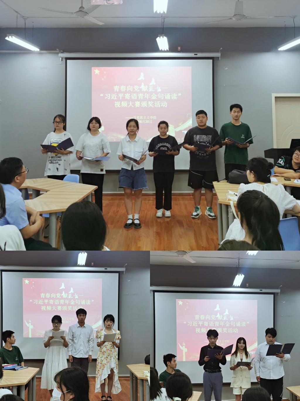 6月30日上午,大赛颁奖仪式在狄寨原校区举行。校党委委员、组织部部长、马克思主义学院院长许仲举主持颁奖仪式。美术与设计学院党总支书记张莉、影视传媒学院党总支书记黄小欢及马克思主义学院全体专职教师参加颁奖仪式。在颁奖仪式上,一等奖和二等奖获奖学生进行了现场朗诵展示。