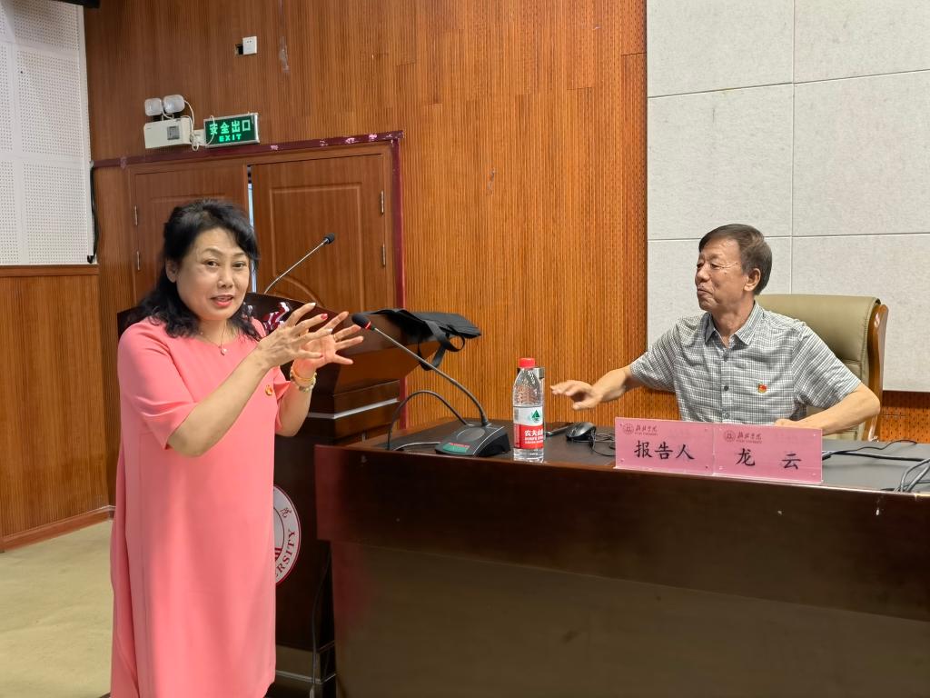 7月23日下午,陕西省作协副主席、文化学者龙云教授在榆林学院为陕西艺术职业学院2022年暑期处科级干部能力提升培训班作题目为《陕北民歌——榆林的第一张名片》专题讲座。校党委副书记佘占宏主持讲座。