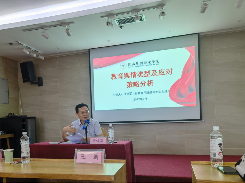 省教育厅融媒体中心主任徐进军作了题为《教育舆情类型及应对策略分析》的专题报告,通过高校舆情大数据分析、高校风险点研判、经典案例深入剖析了当前舆论工作面临的挑战、以及如何应对处置,为学校防范舆论陷阱传授了舆情应对策略实务。