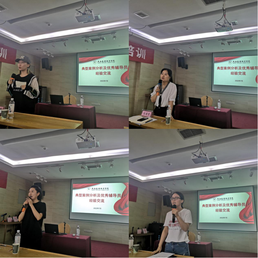 在辅导员案例分析和交流研讨中,我校多位辅导员现身说法,就辅导员具体工作中涉及到的不同领域问题与年轻辅导员们进行了分享:舞蹈学院辅导员闫影谈了“真心关爱感化原生家庭创伤少年”;学前教育学院辅导员周文华谈了“学生意外伤害事件的处理”;音乐学院辅导员常哲谈了“宿舍矛盾的处理”;戏曲学院中专班主任徐滨谈了“中专学生的管理”;学前教育学院辅导员王娇谈了“参加省级辅导员素质能力大赛的经验分享”。