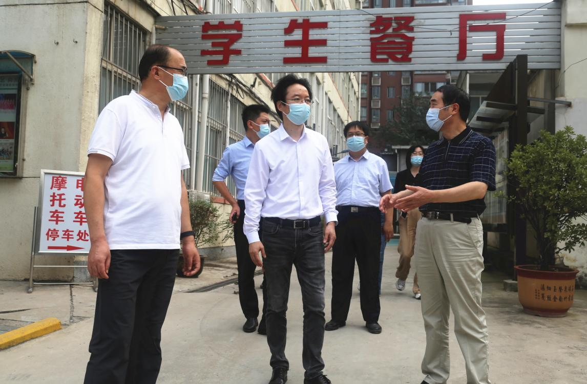 省委教育工委统战部部长孙全学(左一)来我校检查秋季开学校园安全工作