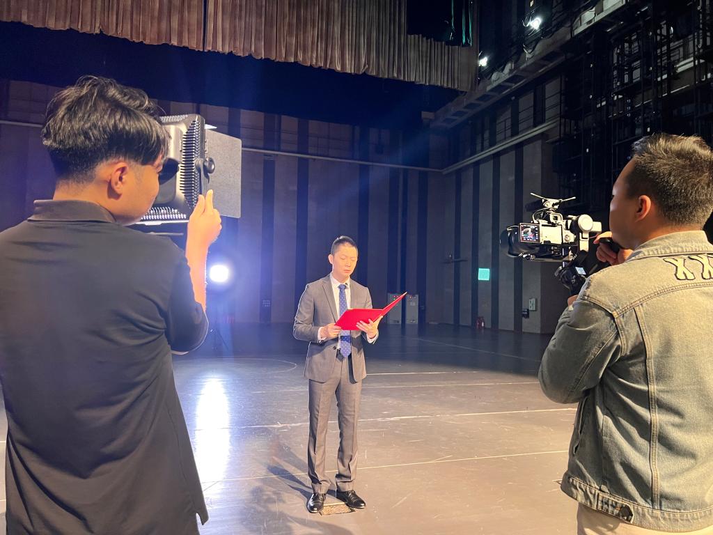 9月25日,我校影视传媒学院院长王亮、副院长张轩铭及专业教师一行6人,受邀赴西安电视台录制“诗歌里的中国”系列节目,为党的二十大胜利召开献礼,庆祝新中国成立73周年。