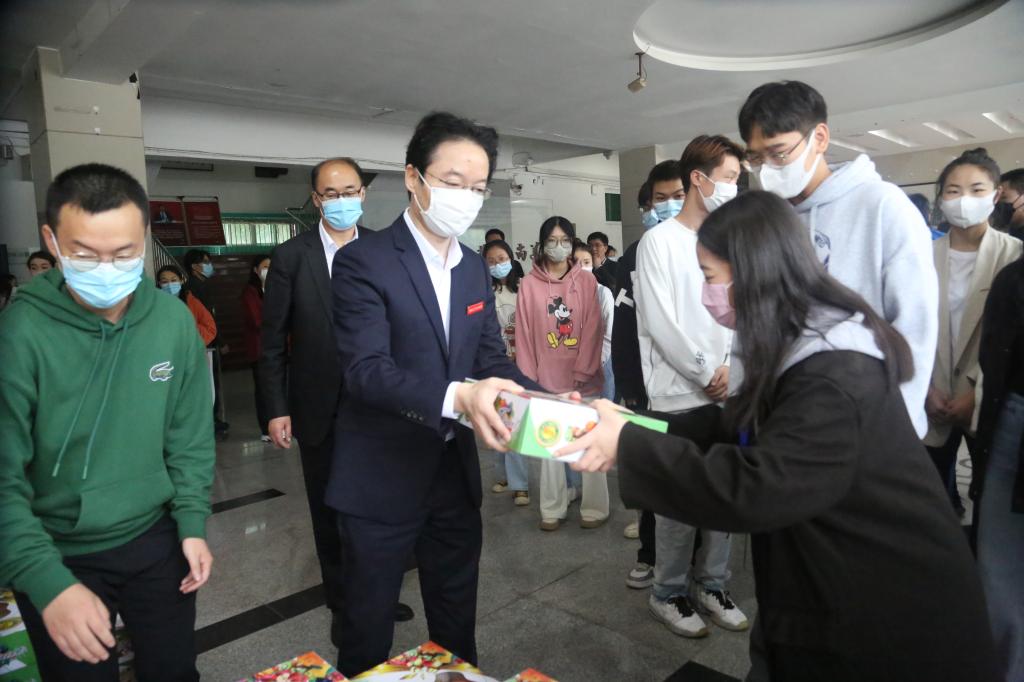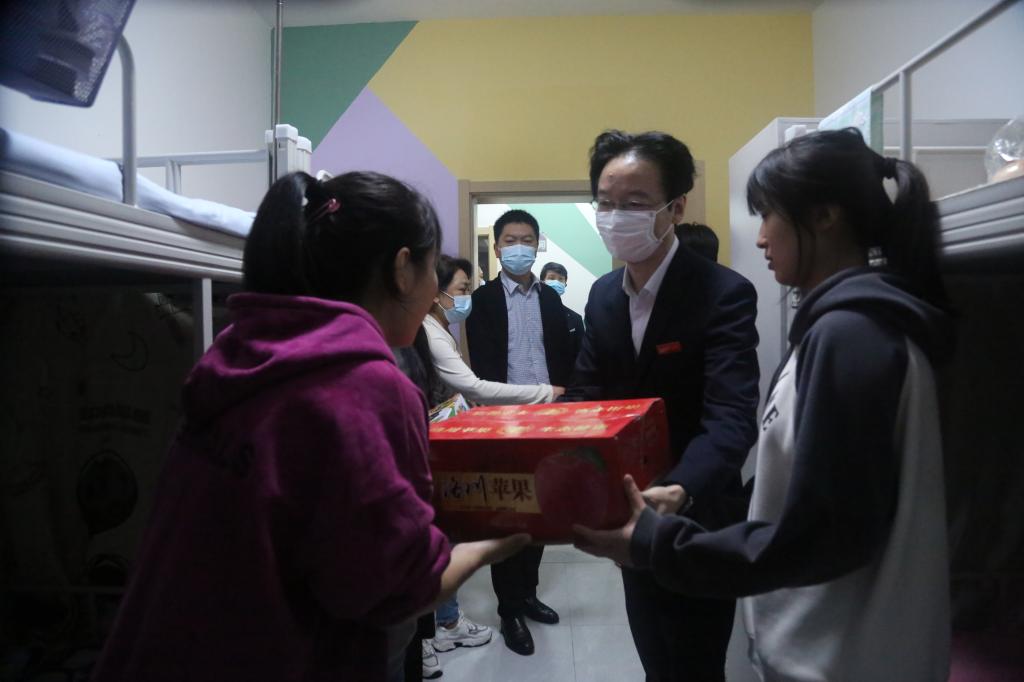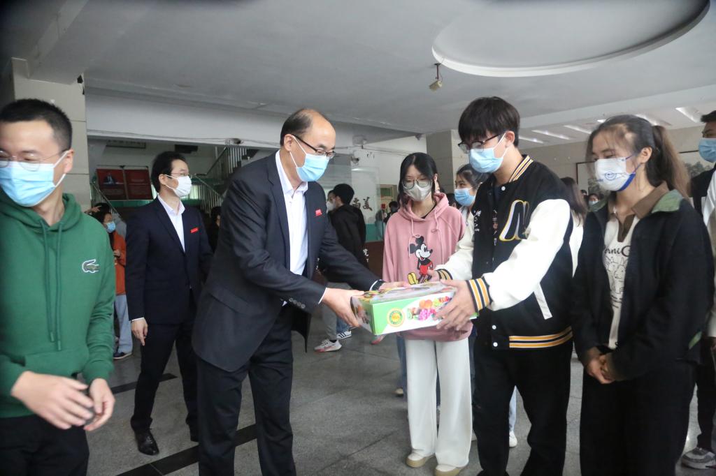 随后,杨孝龙深入文艺南路校区和狄寨校区学生宿舍、教学楼,为学生们送上节日的祝福和慰问品,与同学们亲切交谈,详细了解同学们在学校学习、生活等情况,为他们能够着眼大局,严格遵守学校各项疫情防控规定,彰显新时代大学生的责任与担当点赞,并勉励同学们积极配合学校落实好各项疫情防控举措,持续在疫情防控“思政大课”中,磨砺精神品质,获得成长力量,精进专业,在努力攀登艺术高峰中实现自己的梦想。